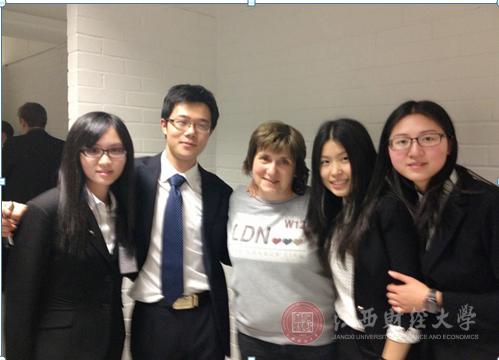 临行前三次简单的模拟和准备不足让我们怀着惴惴不安的心情踏上了伦敦之旅,再加上之前在外教的帮助下看了Youtube上前几届比赛的视频,更是觉得胜算全无。好在3月2日抽签集会时初赛第一的好消息,给了整个团队莫大的鼓舞与安慰,让我们有了勇气和信心面对来自全球各地的15支队伍。小组赛第一场,出现了不少意外,电脑识别不了所有的USB,南岸大学火警在比赛途中响起,所有人撤离学校……种种的没有想到,使所有的参赛队伍得到了一个小时的额外加时。五个小时后,我们走进了展示的教室,面对陌生的评委和器材,我们显得不知所措,紧张到脑子一片空白,至少我是这样。磕巴的讲完自己负责的那一部分,看着队友们游刃有余的流利英语,羞愧的想找个洞钻进去。幸运的是我们8:4大比分完胜对手,教练郭老师和胡老师在展示完也表示我们考虑的比较周全,胜出应该没有问题。那时的我暗暗下定决心,接下来的比赛一定不要拖大家的后腿。小组赛第二场,我们很光荣的输了,心服口服的输了,输的很开心,输的很值,因为我们不仅看到对手对案例的精确理解及成熟的临场应变能力,还让我们知道了自己的不足,模板不是万能的,需要根据不同情况及时调整。这个教训使我们变得更加的自信和从容,开始享受比赛的乐趣,享受时间限制的紧张刺激,享受评委的点评,享受与对手的交流,享受每一场比赛结束后我们的每一点小进步,输赢已变得不那么重要,重要的是在比赛过程中的全神贯注,倾注全力。抱着这样的态度,我们顺利拿下了小组赛最后一场。成为D组第一,晋级八强。遗憾的是,同天下午的四强赛中,因为体力透支和经验不足,止步半决赛。这才猛然的发现,原来所有的不安和担忧全都变成前进的欲望和冲劲,现在的我们是那么渴望再继续走下去,向四强发起冲击。结束赛程后,站在南岸大学的门口,有不甘,有懊悔。但回想起前三天大家一起合作的美好,也开始释怀,毕竟我们曾是那么自信的代表江财站在国际舞台上,毕竟我们的收获远比名次来的多得多……