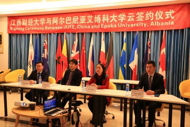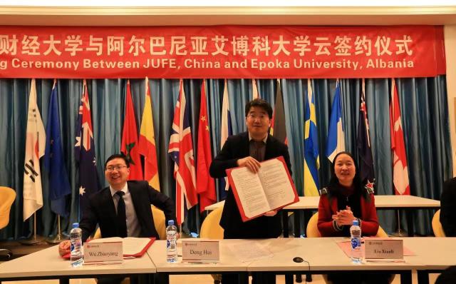此次我校与阿尔巴尼亚艾博科大学的合作得到了中国驻阿尔巴尼亚使馆的指导和支持,两校前期经过数次“云会议”以及不间断的网络沟通,最终达成了协议,完成了“云签约”。今后,我校将努力为中阿两国人文交流、经贸往来添砖加瓦,为服务“一带一路”倡议、中国-中东欧“16+1”合作机制以及构建“人类命运共同体”贡献江财力量。(文/国际合作与交流处肖施蒙 图/宣传部孙坚 编辑/万煜川 审核/杨勇)