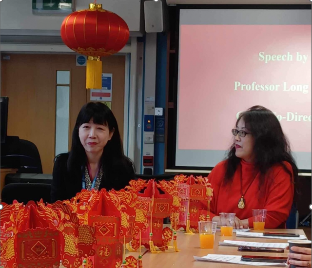 考文垂大学副校长、孔院英方院长徐京晶教授与考大孔院中方院长肖珑教授分别致辞。徐京晶教授为与会嘉宾简要介绍了即将到来的龙年象征,高度赞扬了过去一年孔院取得的成就,对孔院全体人员的辛勤付出表示由衷感谢,并期望考大孔院全体教师继续为当地人民带来更多丰富多彩的中国优秀文化。