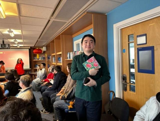 考大孔院学生代表HughBeyer和BenWood在茶话会现场向嘉宾们分享了在孔院学习汉语的经历,他们感怀孔院教师给他们带来的一节节有趣且难忘的高质量汉语和文化课程。BenWood是华威市政厅的政府工作人员,他结合自己在学习中文后助力其服务社区的经历,对孔院及任课教师表达了深切的感谢之情。到场的孔院学员们纷纷许下学好汉语、说好汉语的新年愿望。
