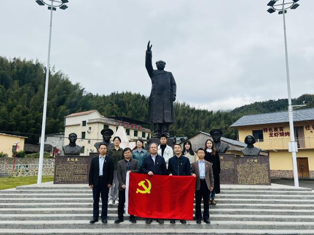 活动最后,国际合作与交流处和党委统战部两个支部齐聚西塔初心广场,在毛主席和革命先烈铜像前合影留念。在漫长而艰苦的革命岁月里,百丈山流传着许多红色历史故事。如今,奉新县百丈山不仅注重传承“红色”,以红色精神激活红色基因,更注重结合绿色文明,从“两山”理论出发,“红绿”共融,走好乡村振兴和乡村现代化建设的每一步。(图文/国际合作与交流处 汪月晗 审核/一审 肖施蒙 二审 刘小兵 终审 龚美君)