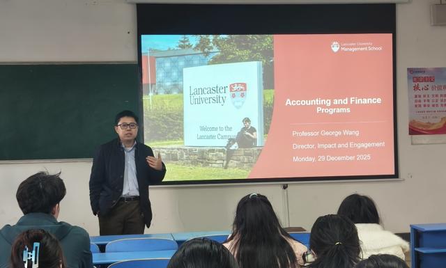 访问期间,George Wang教授面向我校学子开展了合作项目专场宣讲会,详细介绍了兰卡斯特大学的办学特色、留学体验及留英毕业生在国际职场所具备的发展优势。