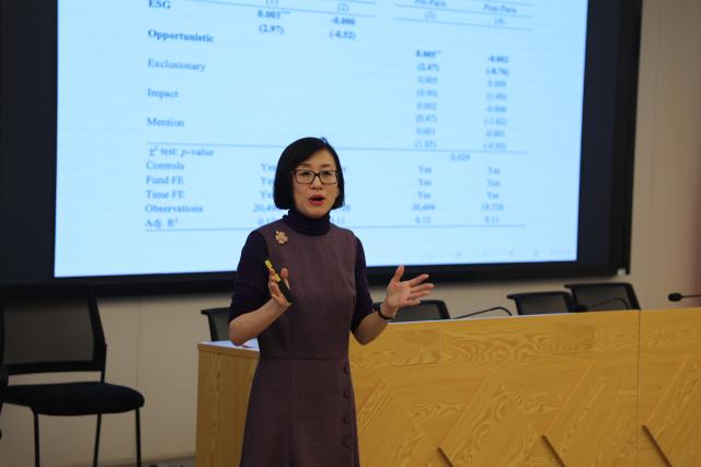 Chelsea Yao教授则应邀为我校会计学院与金融学院师生作了题为“ESG(环境、社会与治理)前沿发展与文本分析应用”的学术交流讲座,现场互动活跃,讨论氛围热烈。该讲座拓宽了我校师生在ESG领域的研究视野,也为两校在相关学科的深度合作奠定了良好基础。