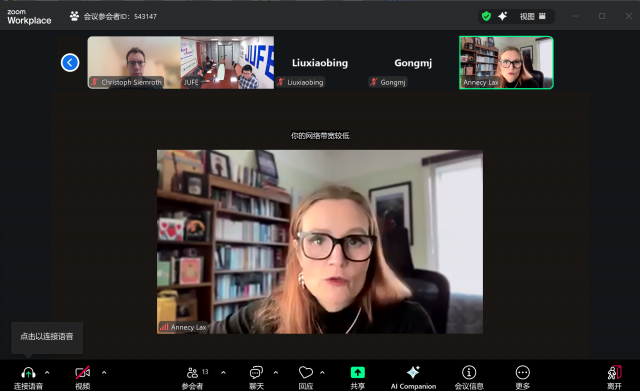 本次线上洽谈会不仅增进了两校间的相互了解,也为下一步务实合作奠定了坚实基础。双方表示,将继续保持密切沟通,共同推动中外合作办学项目取得实质性进展,助力两校教育事业共同发展。(图文/国际合作与交流处 审核/一审 肖施蒙 二审 刘小兵 终审 龚美君)